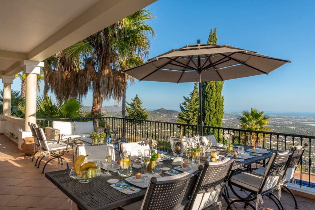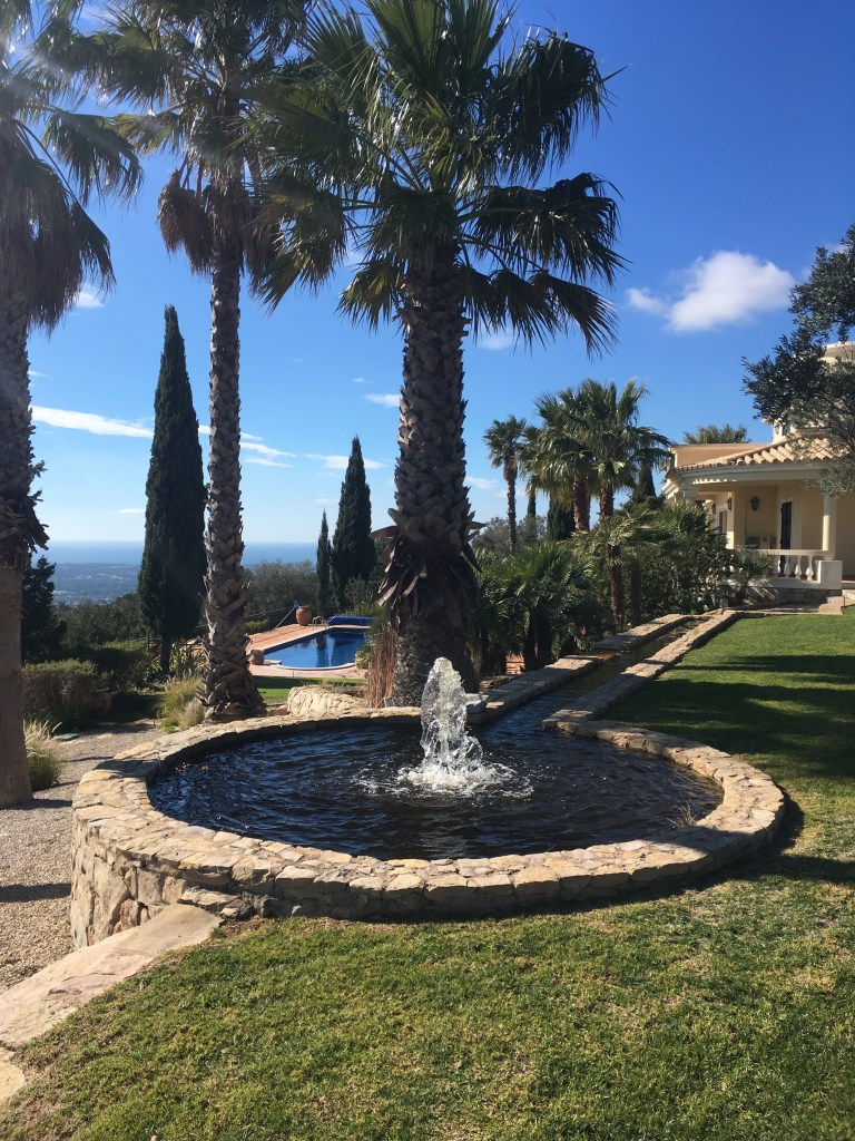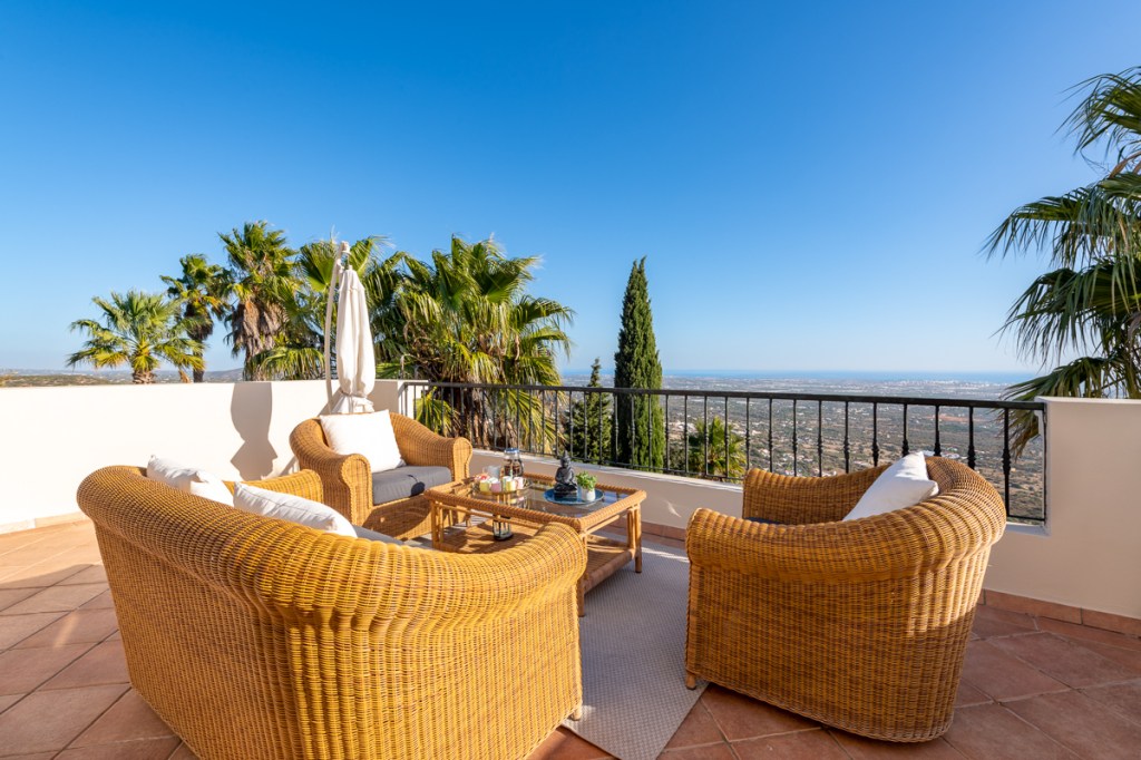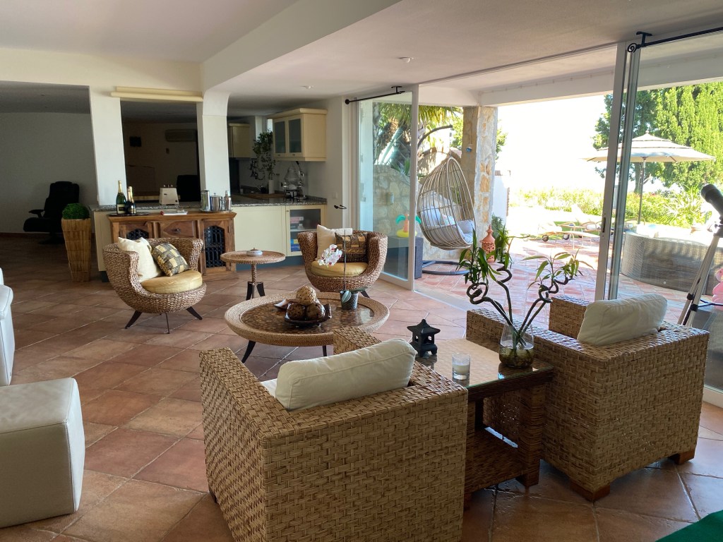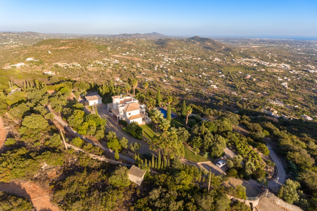 Boasting panoramic Atlantic views on a 5 Acre Setting, the villa is a magnificent 5 bedroom property with a large heated salt swimming pool, games room, mature gardens with fish ponds and near 360° panoramic views over the Algarve and Atlantic Ocean. Once home to one of the world’s most famous football players, this al fresco lifestyle will be yours. The villa can accommodate 12 and is set in a private, quiet location. Located in the Golden Triangle, near the town of Loule, the villa is less than 20 minutes from Faro airport, 30 minutes to the beaches of Quinta do Lago, and 8 minutes to the new Mar shopping center.