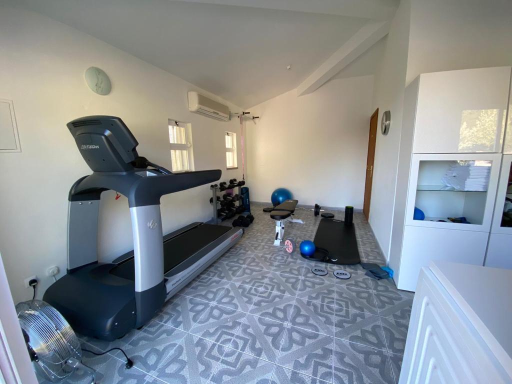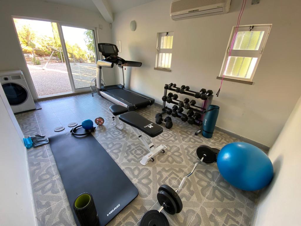 The gym is in the guest cottage behind the main house. It contains a Life Fitness treadmill, a Schwinn spinning bike, a weight bench and free weights weights, yoga mats and pilates equipment. There is also a golf practice net outside of the gym and a decent basketball hoop with 2 basketballs.