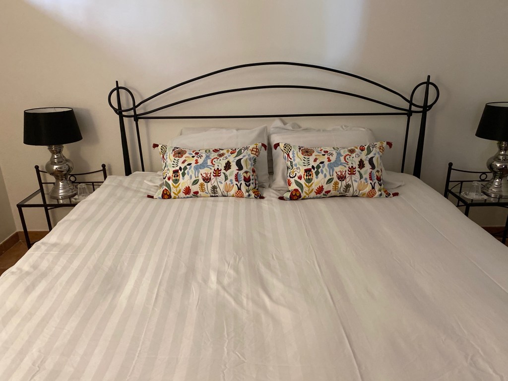 Each bedroom has new, luxurious mattresses, down duvets, down and foam pillows, designer 800tc cotton sheets, imported Turkish bath towels, white waffle robes, pool towels, hairdryers and the basic amenities one would expect. All bedrooms, except one have UK super king (US King sized) mattresses. THe fifth bedroom has two single beds.